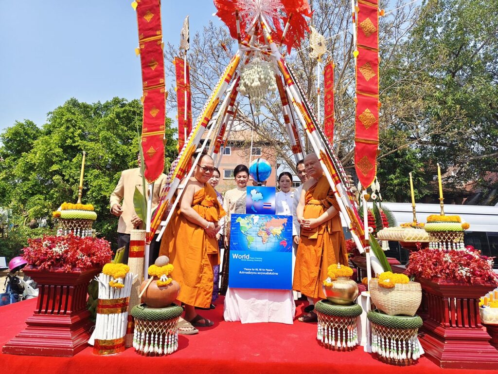 ฮือฮา วัดโลกโมฬีตั้ง “โมเดลลูกโลก–แผนที่โลก” ใต้ซุ้มสืบชะตาล้านนา สวดนพเคราะห์ สื่อสันติภาพ อธิษฐานโ...