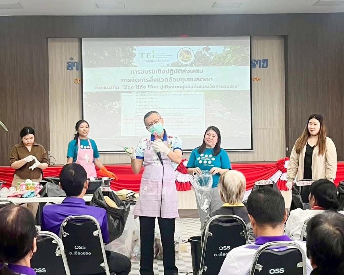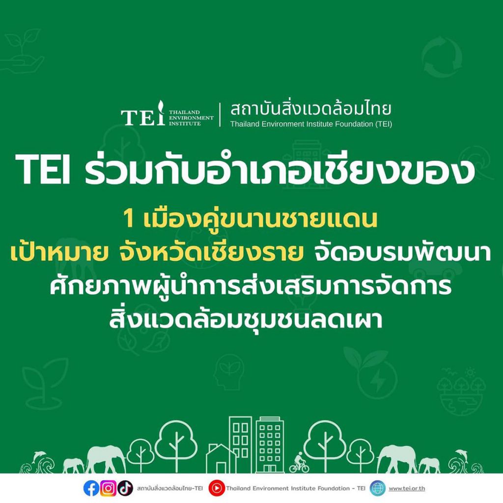TEI ร่วมกับอำเภอเชียงของ 1 เมืองคู่ขนานชายแดนเป้าหมาย จังหวัดเชียงราย จัดอบรมพัฒนาศักยภาพผู้นำการส่งเสริมการจัดการสิ่งแวดล้อมชุมชนลดเผา
