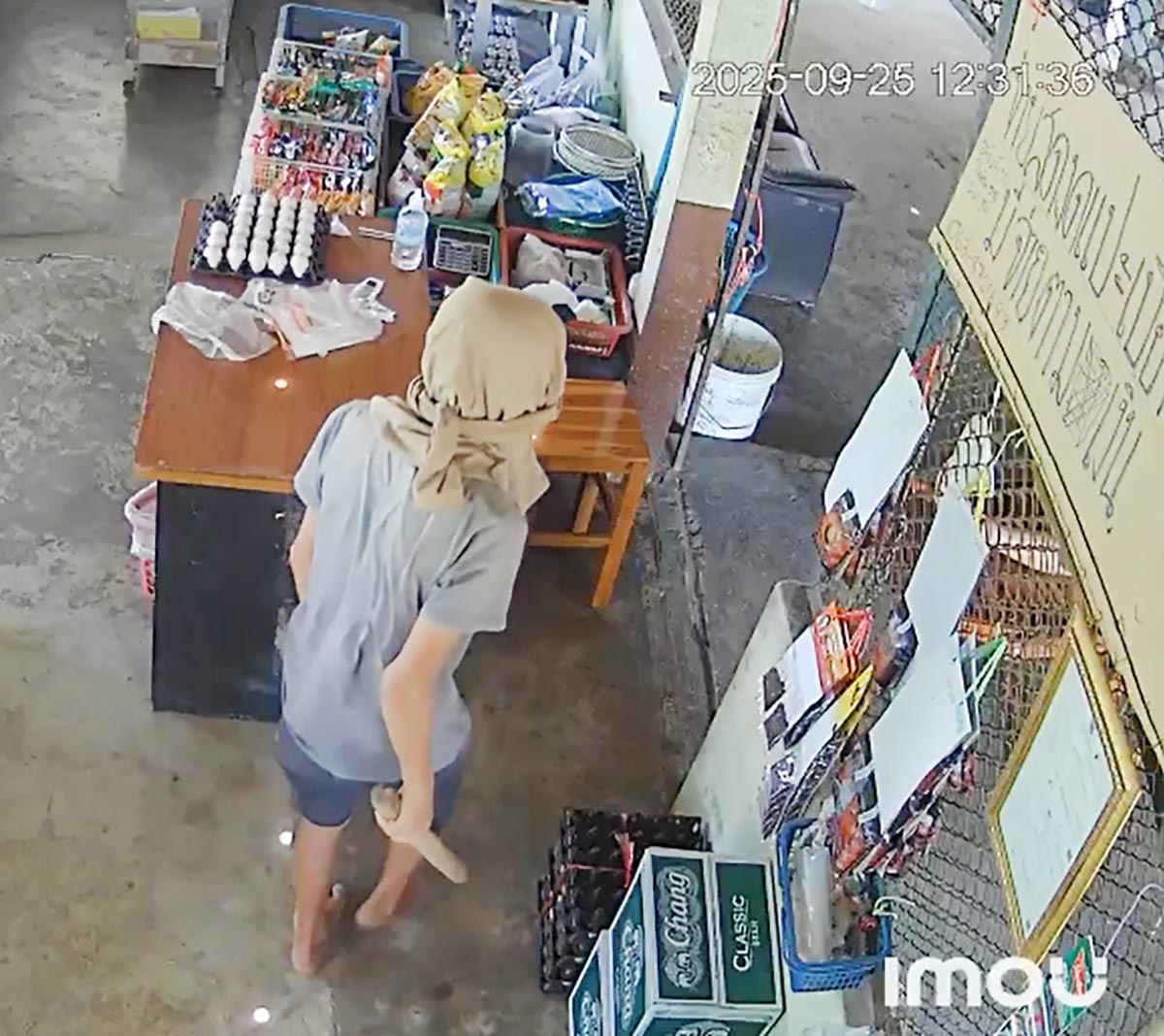 เจ้าหน้าที่เข้าตรวจสอบที่เกิดเหตุ พบคราบเลือดและรองเท้าแตะถอดทิ้งไว้ในร้านค้า ต่อมาได้ตรวจสอบกล้องวงจรปิด พบคนร้ายสวมเสื้อยืดสีเทาแขนสั้น กางเกงสามส่วนสีดำ ใช้เสื้อแขนยาวสีน้ำตาลปิดบังใบหน้า และใช้อาวุธไม้ทุบศีรษะผู้เสียหายหลายครั้ง ก่อนจะขโมยเบียร์ 1 ลัง ไปซุกซ่อนในป่าหญ้าบริเวณทางเข้าป่าช้า บ้านสันหนองควาย ห่างจากร้านค้าประมาณ 50 เมตร แล้วหลบหนีไป