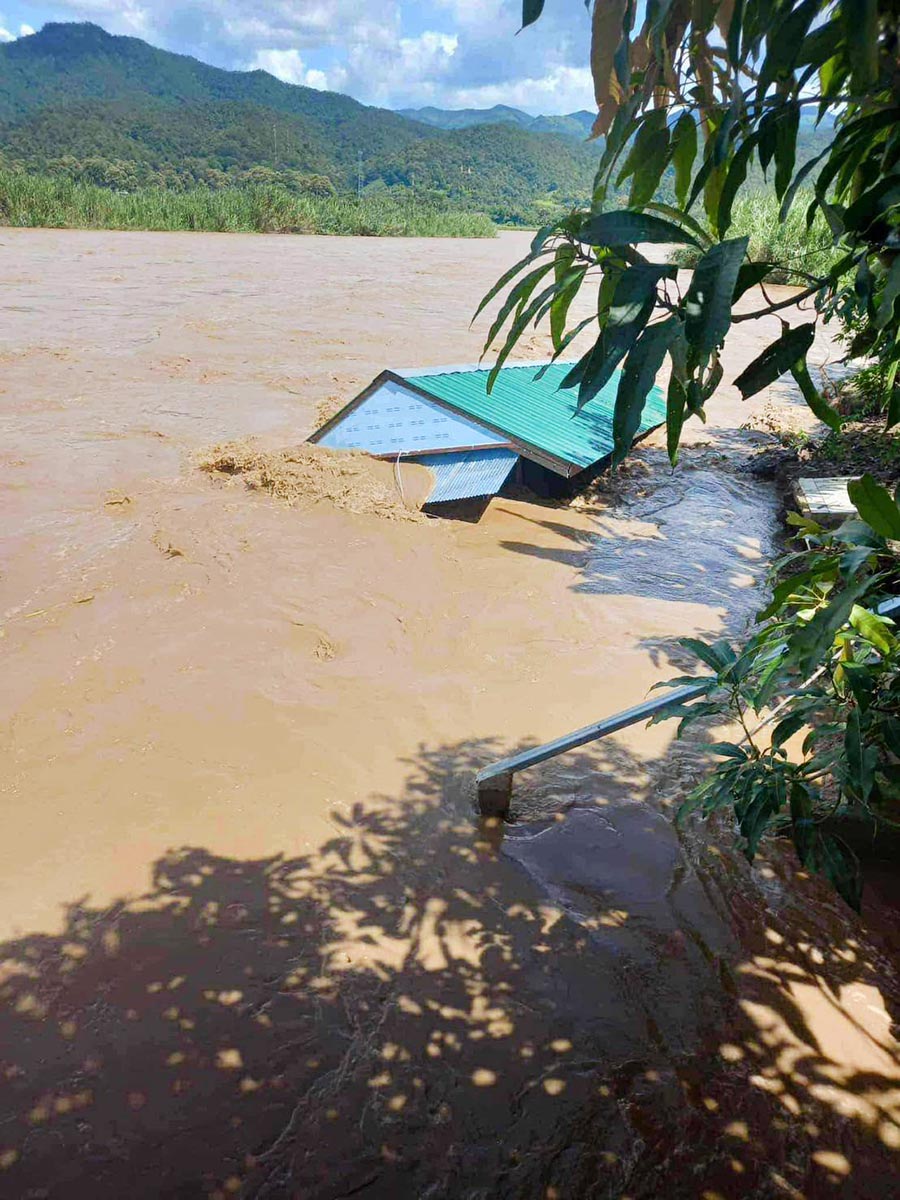 แม่สะเรียง น้ำกัดเซาะตลิ่งทรุดบ้านพังลอยไปกับสายน้ำแม่ยวม โชคดีขนย้ายสิ่งของได้ทันท่วงที