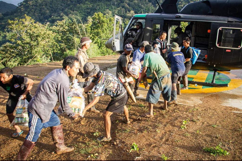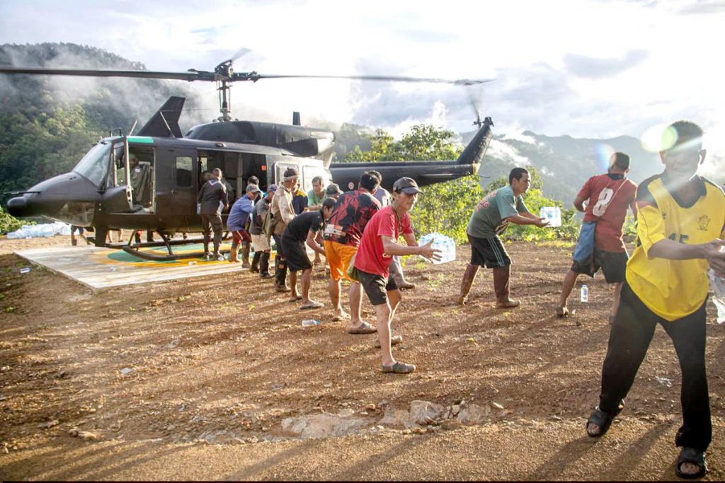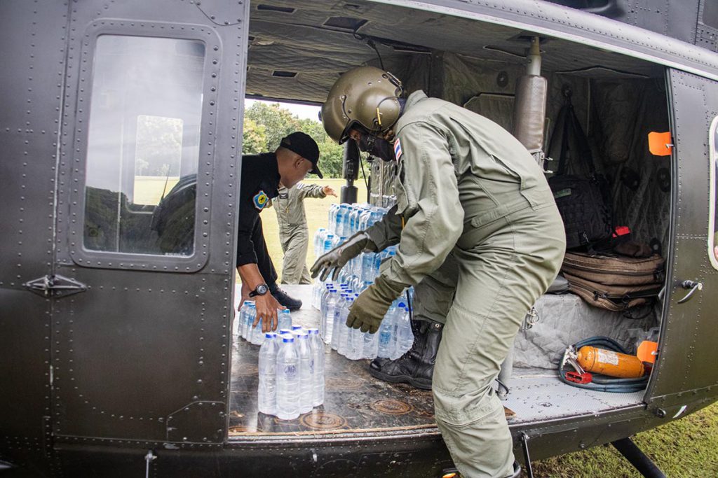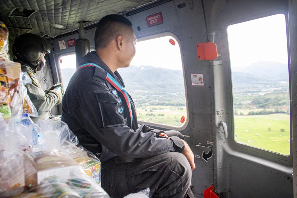 กองทัพบกช่วยเหลือประชาชน จัด ฮท.212 ส่งถุงยังชีพให้ราษฏรบ้านห้วยแห้งที่ถนนถูกตัดขาดไม่สามารถเข้าให้การช่วยเหลือได้