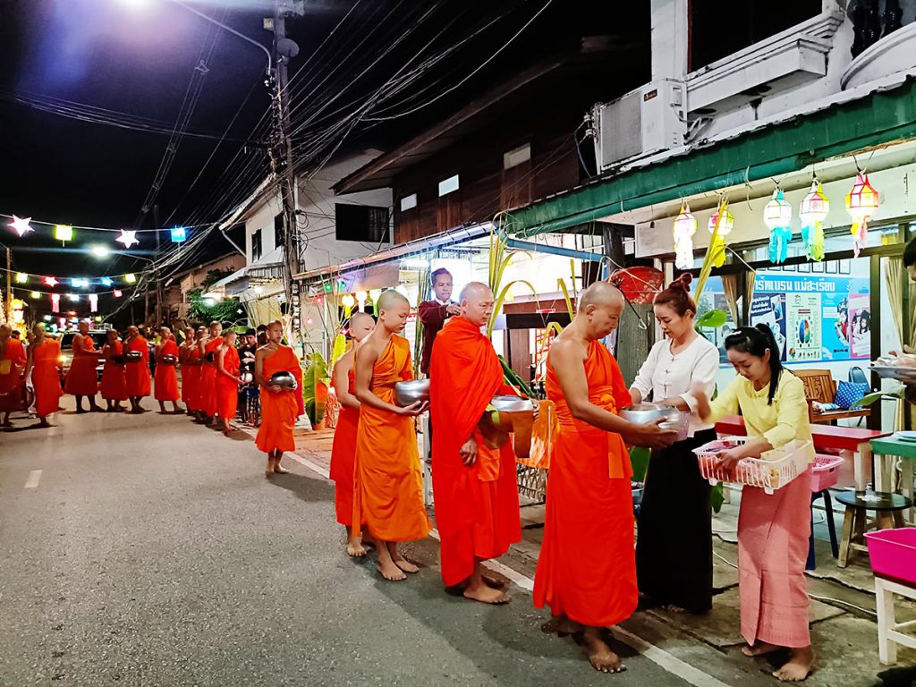 ประชาชนชาวอำเภอแม่สะเรียง พร้อมครอบครัว ร่วมทำบุญตักบาตร เช้าวันที่2  เอกลักษณ์ที่สำคัญงานประเพณีออกหว่า ซึ่งเป็นการตักบาตรที่เช้าที่สุดในประเทศไทย