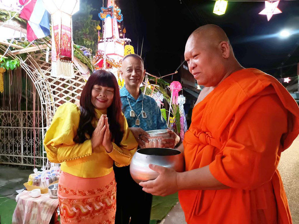 ประชาชนชาวอำเภอแม่สะเรียง พร้อมครอบครัว ร่วมทำบุญตักบาตร เช้าวันที่2  เอกลักษณ์ที่สำคัญงานประเพณีออกหว่า