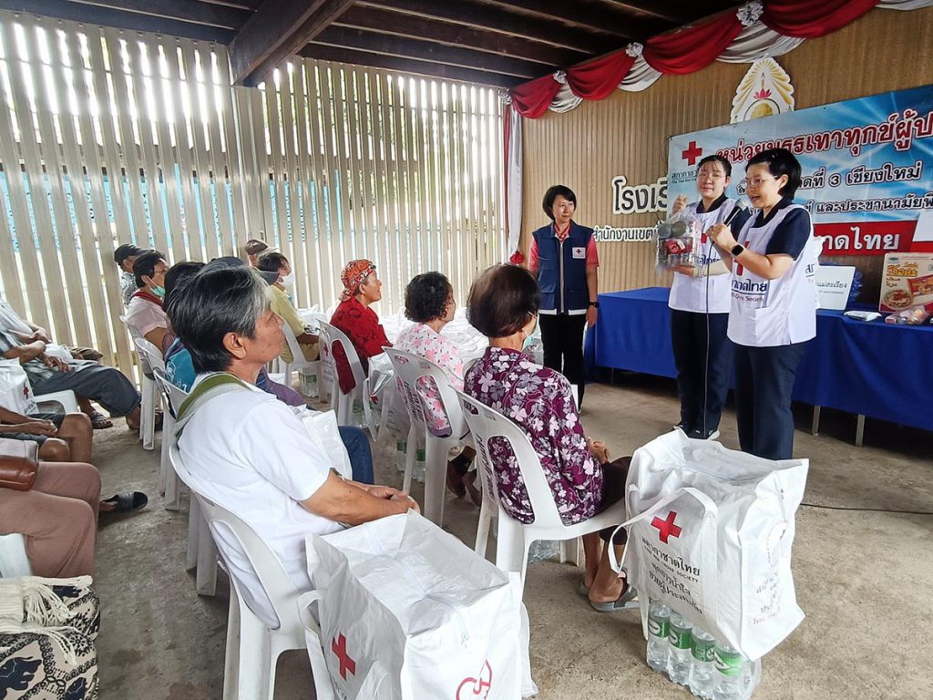 กิ่งกาชาดอำเภอแม่สะเรียง ร่วมกับ สถานีกาชาดที่ 3 เชียงใหม่ ลงพื้นที่มอบถุงบรรเทาทุกข์ช่วยเหลือผู้ประสบภัยในพื้นที่อย่างต่อเนื่อง