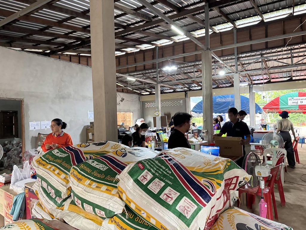 มหาวิทยาลัยราชภัฏเชียงรายจึงได้ร่วมกับคณะกรรมการส่งเสริมกิจการมหาวิทยาลัยฯ เครือข่ายมูลนิธิอาสาเพื่อนพึ่ง(ภาฯ) ยามยาก สภากาชาดไทย และศูนย์การจัดการภัยพิบัติในพื้นที่ต่าง ๆ ได้แก่ ตำบลเวียงพางคำ อ.แม่สาย ตำบลบ้านดู่ อ.เมือง และลุ่มน้ำลาว อ.เวียงป่าเป้า รวมถึงโครงการวิจัย “การขับเคลื่อนแพลตฟอร์มบริหารจัดการภัยพิบัติ CR Disaster MAN” จาก บพท. ตลอดจนภาคเอกชนและประชาชนในจังหวัดเชียงราย เช่น กลุ่มชอปเปอร์เชียงราย กลุ่มบุญนิยม และ พคบ. รุ่นที่ 3 ระดมทุนจัดหาข้าวสารจำนวน 400 ถุง อาหารแห้ง และน้ำยาล้างโคลน 100 ลิตร
