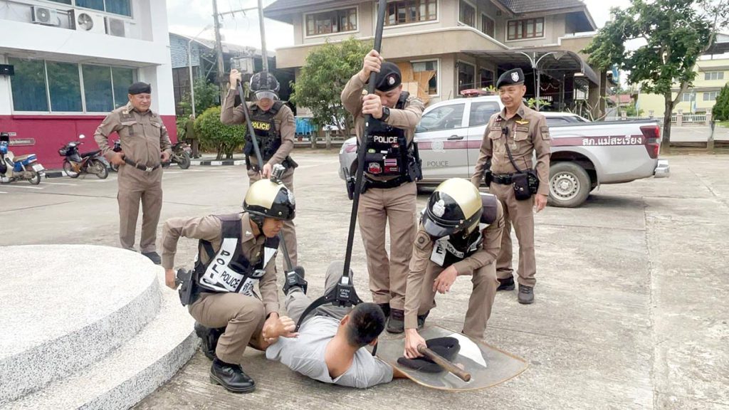 สภ.แม่สะเรียง เพิ่มศักยภาพ เสริมทักษะ ยุทธวิธีการจับกุม การใช้ไม้ง่ามไฟฟ้า แก่เจ้าหน้าที่สายตรวจ