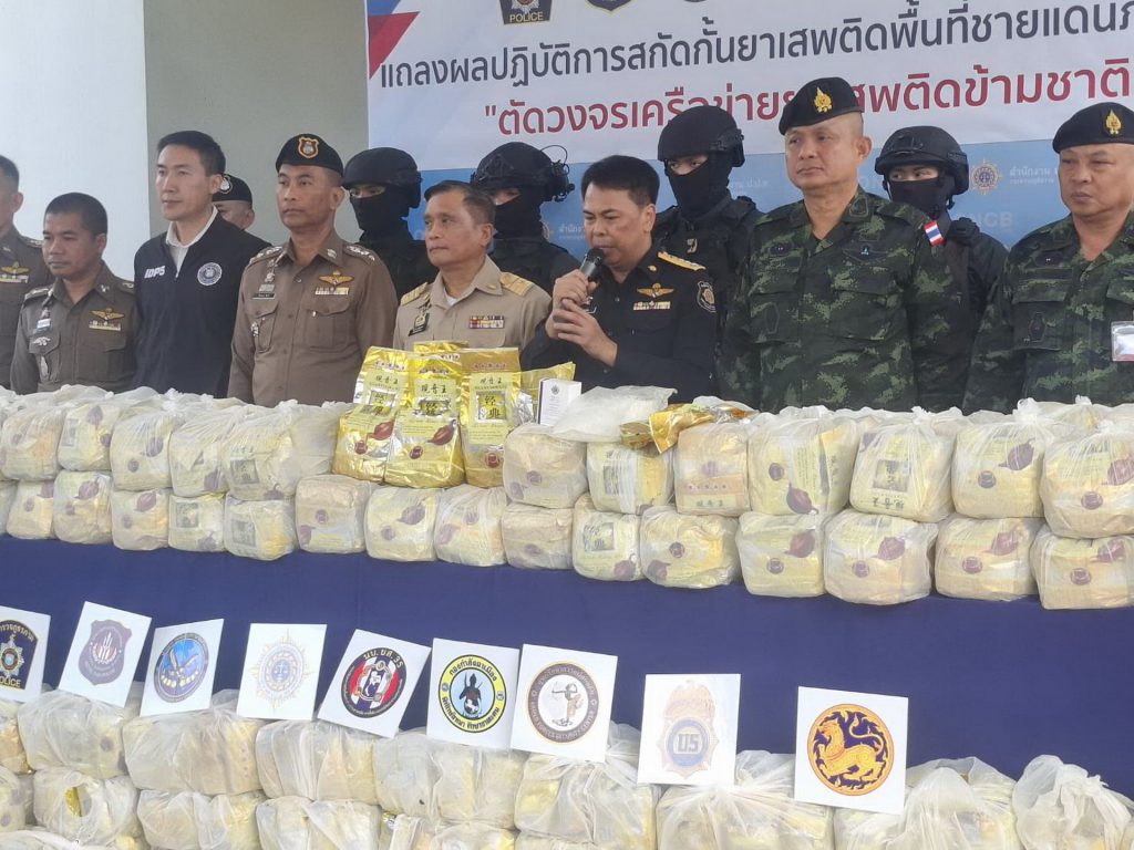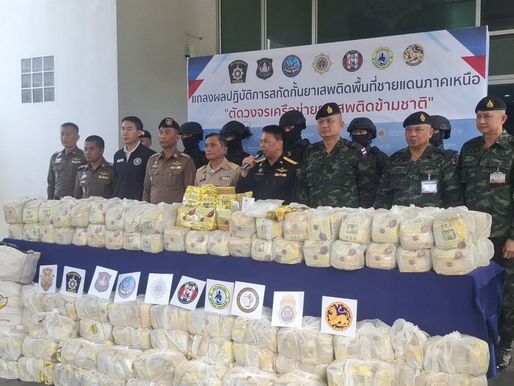 วันที่ 11 พ.ย.68 ณ สำนักงาน ปปส. ภาค 5 ต.ช้างเผือก อ.เมืองเชียงใหม่ พ.ต.ท. นริช สอนดิษฐ ผอ.สำนักงาน ปปส. ภาค 5 พล.ท. ชายแดน กฤษณสุวรรณ แม่ทัพน้อยที่ 3 รอง ผบ.นบ.ยส.35 พล.ต. สุชาติ พุ่มสุวรรณ ที่ปรึกษา กกล.ผาเมือง พล.ต.ต. ยุทธนา แก่นจันทร์ ผบก.ภ.จว.เชียงใหม่ ได้ร่วมกันแถลงข่าวการจับกุมยาไอซ์ 496 กิโลกรัม โดยการจับกุมครั้งนี้สืบเนื่องมาจากเจ้าหน้าที่ได้บูรณาการจับกุมคดีสำคัญก่อนหน้า 5 คดี ยึด ยาไอซ์ 600 กิโลกรัม ในพื้นที่ อ.ขุนยวม จ.แม่ฮ่องสอน เจ้าหน้าที่พบพฤติการณ์ของกลุ่มเครือข่ายที่ใช้รูปแบบการว่าจ้างรถบรรทุกพืชผลทางการเกษตรซุกซ่อนยาเสพติด โดยคนรับจ้างไม่รู้ตัว เพื่อหลีกเลี่ยงการจับกุม จึงเฝ้าติดตามสืบสวนจนพบว่ามีเครือข่ายนี้จะมีการลักลอบลำเลียงยาไอซ์ล็อตใหญ่ปะปนมากับสินค้าการเกษตรจึงเฝ้าจับตา ต่อมาได้พบกับนายดนัย สมาชิกคนสำคัญของแก๊งค้ายาแก๊ง ‘คาวบอยบ่อแก้ว “พร้อมพวกรวม 3 คน ได้ที่ลานจอดรถย่านตลาดเมืองใหม่ ต.ช้างม่อย อ.เมืองเชียงใหม่ โดยใช้รถอีซูซุสี่ประตูสีขาว ทางเจ้าหน้าที่ก็บุกเข้าจับตรวจค้นพบยาไอซ์ 496 กิโลกรัมซุกซ่อนปะปนในตะกร้ามันฝรั่งจึงจับกุม จากการสอบสวนผู้ต้องหาให้การซัดทอดว่ามี ผู้สั่งการผู้ว่าจ้างอาศัยอยู่ในพื้นที่ อ.แม่ริม จ.เชียงใหม่ และมีปลายทางของกลางคือตลาดไท จ.ปทุมธานี ซึ่งเจ้าหน้าที่อยู่ระหว่างการขยายผลสืบสวนหาตัวผู้ร่วมกระทำผิดมาดำเนินคดีตามกฎหมายต่อไป.สำหรับแก๊งค้ายา “คาวบอยบ่อแก้ว” เป็น แก๊งค้ายาเสพติดรายใหญ่ภาคเหนือ ที่มีบทบาทสำคัญในการสั่งการว่าจ้างและขับรถนำทางลำเลียงยาเสพติดจากพื้นที่ชายแดนเมื่อต้นปี68 เจ้าหน้าที่เคยลุยค้น 30 จุด ใน 5 จังหวัด เชียงใหม่, เชียงราย, ลำพูน, พะเยา, และหนองคาย ของแก๊งนี้ยึดทรัพย์ได้กว่า 120 ล้านบาท