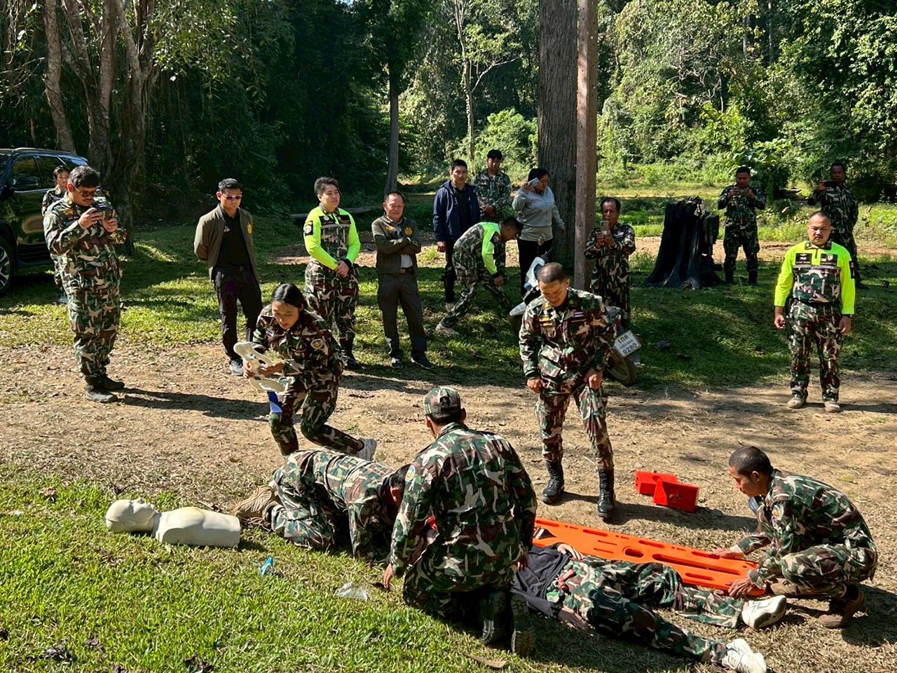 การฝึกทบทวนความรู้ด้านการกู้ชีพ กู้ภัย ในอุทยานแห่งชาติ และวนอุทยาน ประจำปีงบประมาณ พ.ศ. 2569 ประกอบไปด้วย การปฐมพยาบาลเบื้องต้นด้วยอุปกรณ์มาตรฐาน + การปฐมพยาบาลเบื้องต้น ด้วยอุปกรณ์ประยุกต์ การยกและการเคลื่อนย้ายด้วยอุปกรณ์มาตรฐาน การช่วยชีวิตขั้นพื้นฐาน การใช้เครื่องฟื้นคืนคลื่นหัวใจด้วยไฟฟ้าแบบอัตโนมัติ การช่วยเหลือผู้ประสบภัยทางน้ำเบื้องต้น เงื่อนเชือกสำหรับงานกู้ภัยในอุทยานแห่งชาติ การยกและการเคลื่อนย้ายด้วยอุปกรณ์ประยุกต์ และ การใช้งานและบำรุงรักษารถพยาบาลประจำอุทยานแห่งชาติ