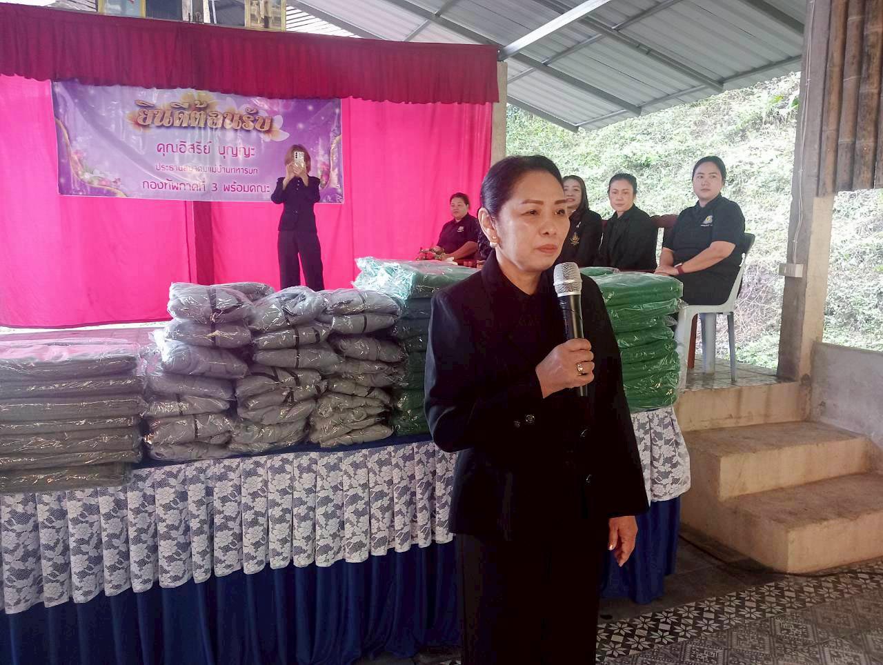 มอบอุ่นไอรัก ประธานสมาคมแม่บ้านทหารบก สาขากองทัพภาคที่ 3 มอบผ้าห่มบรรเทาความหนาวเย็นให้เด็กนักเรียน