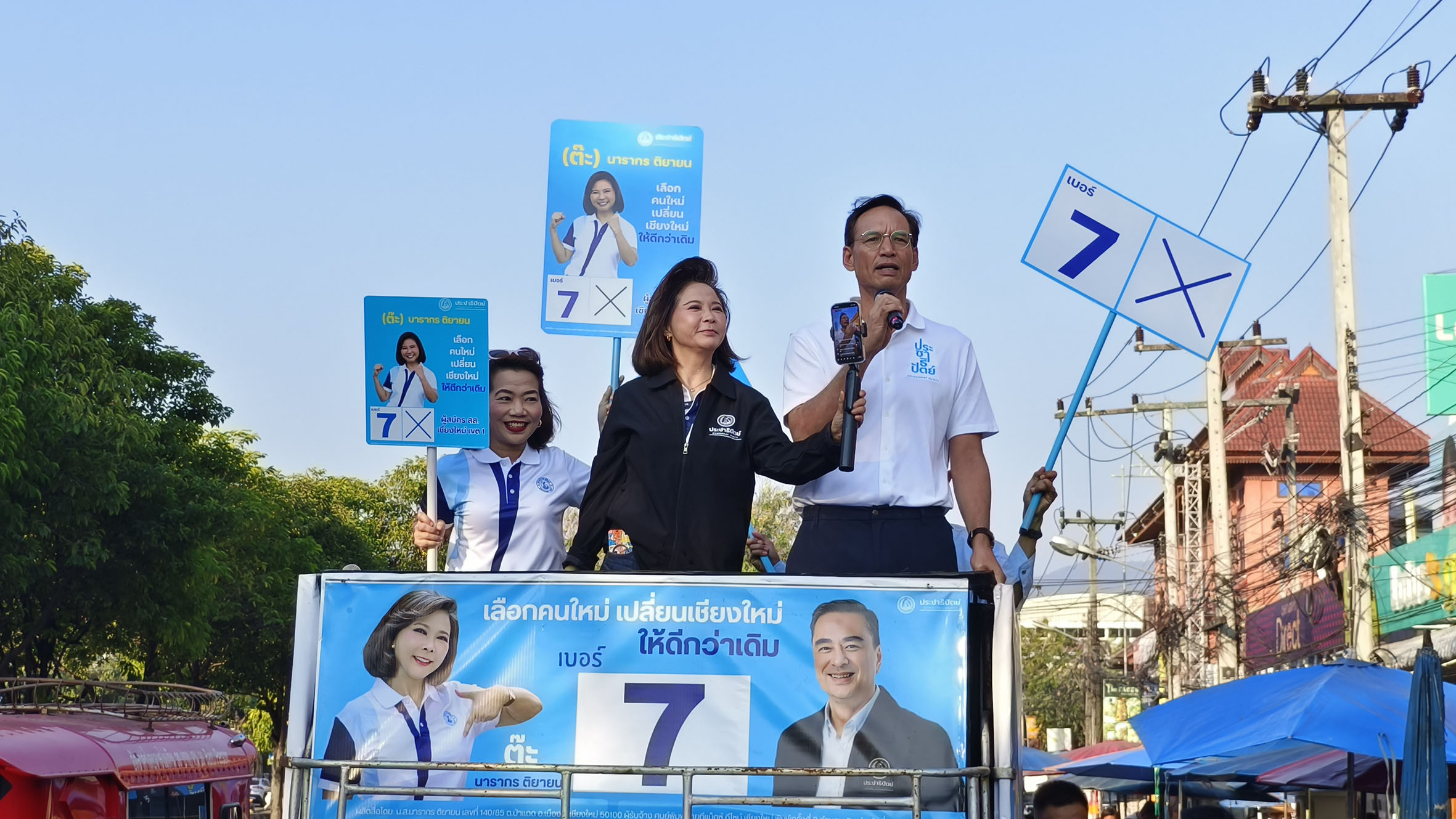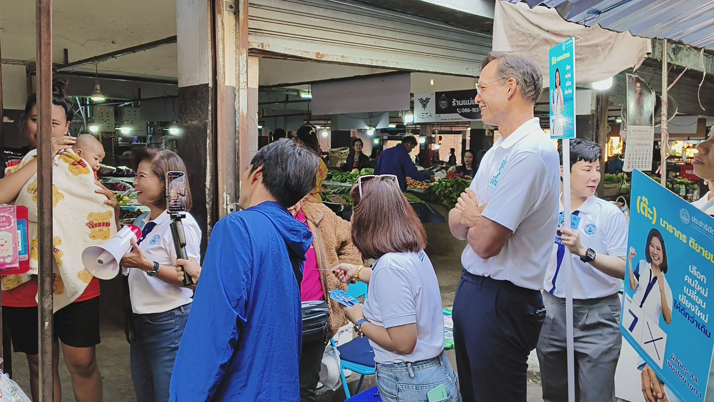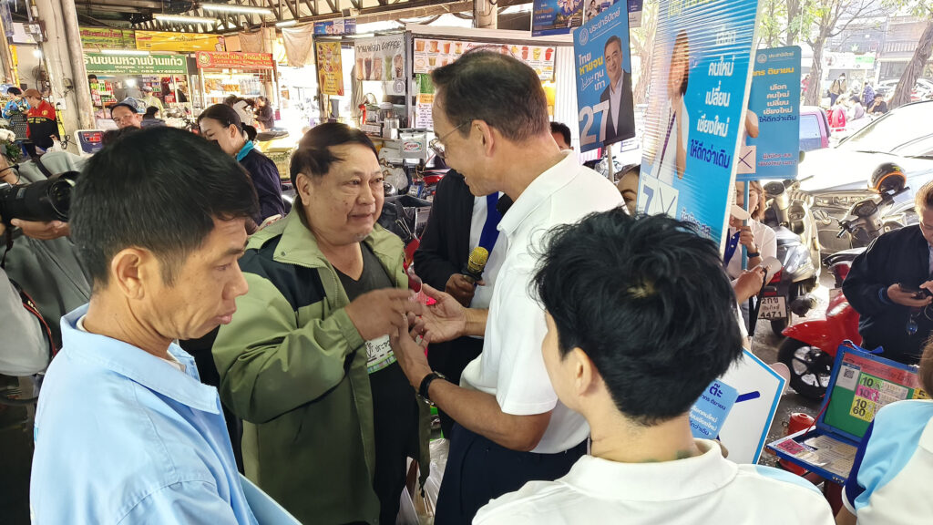 วันที่ 14 ม.ค. 69 นายกรณ์ จาติกวณิช แคนดิเดตนายกรัฐมนตรี พรรคประชาธิปัตย์ ลงพื้นที่ เขต 1 อำเภอเมือง เชียงใหม่ ที่ตลาดประตูเชียงใหม่โดยมี ต๊ะ นารากร ติยายน ผู้สมัคร สส.เบอร์ 7 เขต 1 เชียงใหม่ และพลตำรวจตรี ปิยะพันธ์ ภัทรพงศ์สินธุ์ ผู้สมัคร สส.เบอร์ 2 เขต 2 เชียงใหม่ ซึ่งมีพ่อค้าแม่ค้าในตลาดให้การต้อนรับและกล่าวทักถ่าย พร้อมถ่ายภาพเซลฟี่อย่างต่อเนื่อง