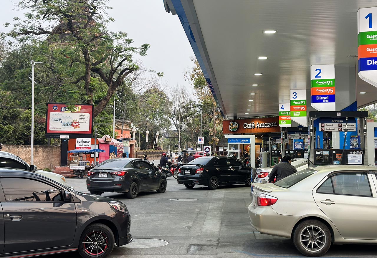ชาวเชียงใหม่แห่นำรถมาเติมน้ำมันตามปั๊มน้ำมันหลายแห่ง คิวยาวล้นปั๊ม แม้รัฐย้ำตรึงราคา ยืนยันมีสำรองเพียงพอ