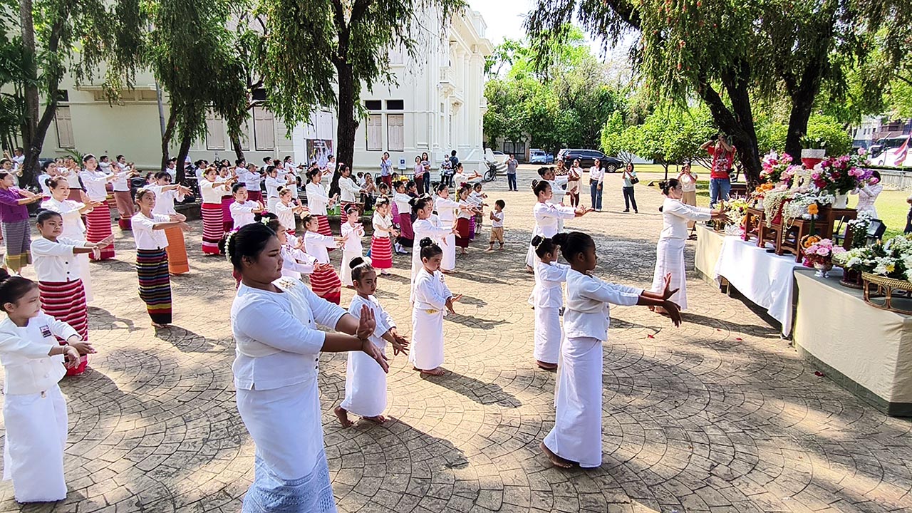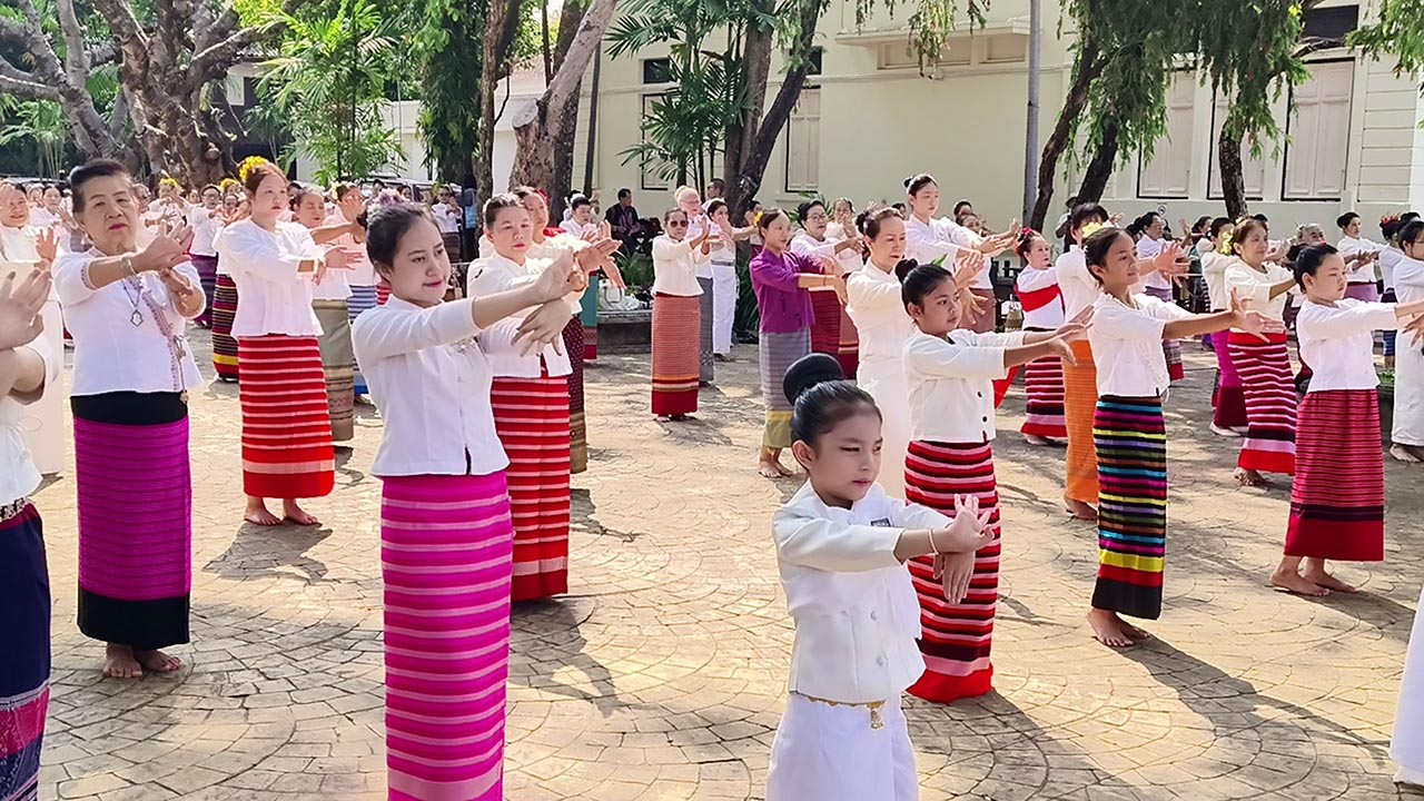 วันที่ 15 มี.ค. 69 ที่ลานหอพื้นถิ่นล้านนา อำเภอเมือง จังหวัดเชียงใหม่ นางเสาวคนธ์ ศรีบุญเรือง ตัวแทนเครือข่ายชุมชนเมืองฮักเชียงใหม่ ได้นำกลุ่มช่างฟ้อนพื้นเมืองล้านนา มีเด็กอายุตั้งแต่ 3 – 4 ขวบ จนถึงผู้สูงอายุ รวมกว่า 100 คน ร่วมทำพิธียอสวยไหว้สา พระญามังราย หรือพิธียกขันไหว้ครู ก่อนจะร่วมฟ้อนรำถวาย และเข้ารับการอบรมในช่วงวันเสาร์ และอาทิตย์ ไปจนถึงวันที่ 5 เม.ย. 69 ที่เตรียมจะมีการซ้อมฟ้อนเสมือนจริงครั้งใหญ่ ที่จะมีช่างฟ้อน 730 คน ร่วมฟ้อน เนื่องในวันที่ 12 เม.ย. 69 ที่จะเข้าสู่เทศกาลปี๋ใหม่เมือง หรือเทศกาลสงกรานต์